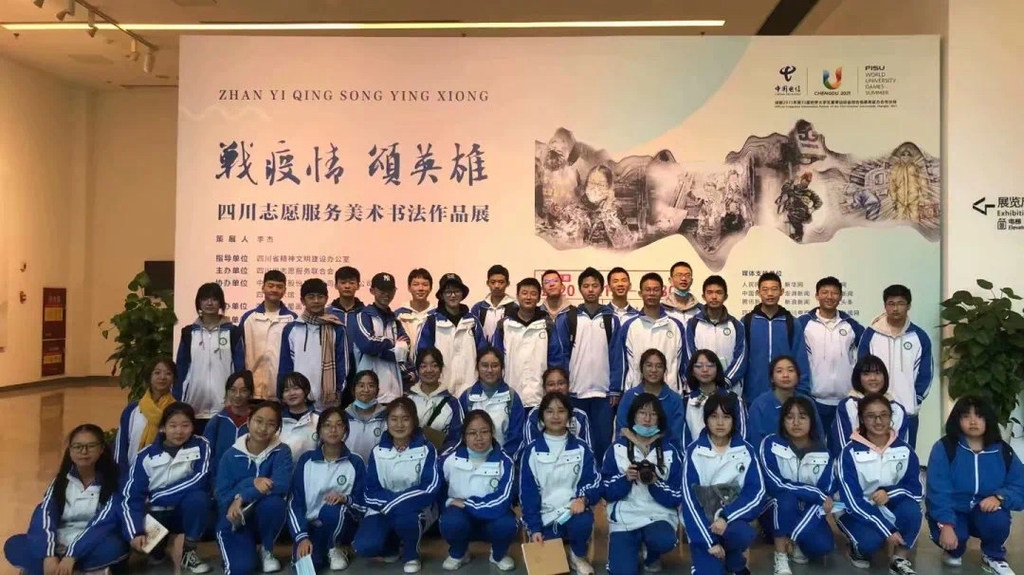 在四川美术馆,以“战役情,颂英雄”为主题的展览呈现在棠中学子眼前。为了记录抗击新冠疫情这场没有硝烟的战争,表现各地抗疫人员和组织的爱国精神,艺术家们运用书画独特的艺术语言,再现抗疫惊心动魄瞬间,用笔墨讴歌抗疫事迹群众万众一心、众志成城的感人故事,讴歌了中国人民守望相助的家国情怀。