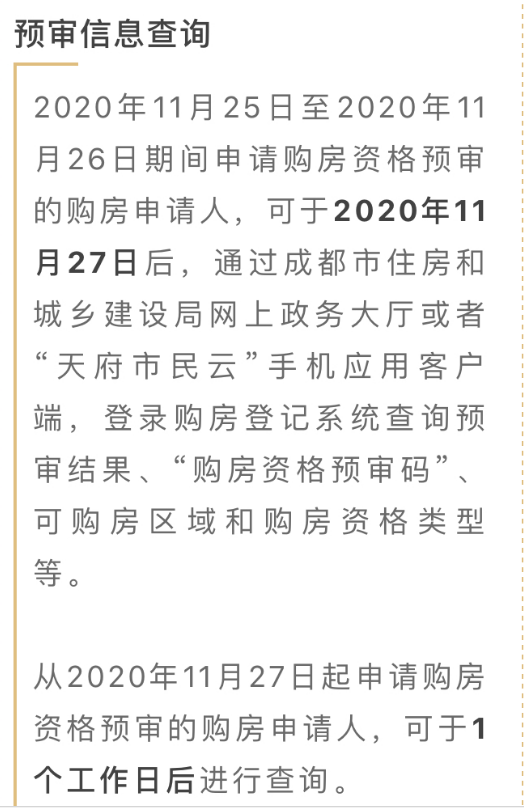 第一步,通过成都市住房和城乡建设局网上政务大厅或者“天府市民云”手机应用客户端,登录购房登记系统进行购房资格预审申请。