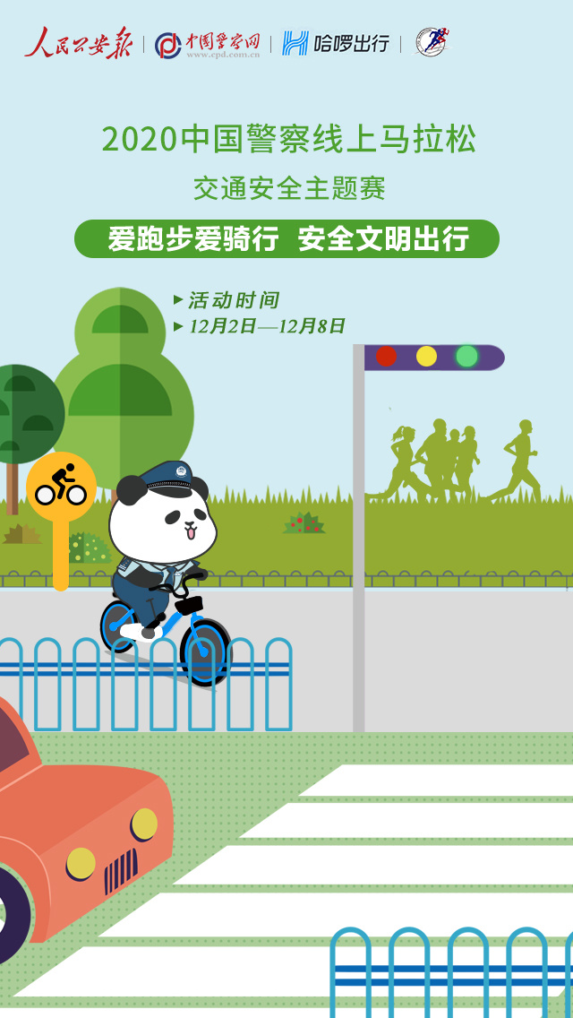 随时随地都可参加的马拉松赛来了!12月2日是第9个全国交通安全日,12月2日至8日,中国警察网联合专业移动出行平台哈啰出行举办“2020中国警察线上马拉松安全主题赛”。此次活动主题为“爱跑步爱骑行 安全文明出行”,旨在倡导全民健身运动,宣传安全文明的出行理念。
