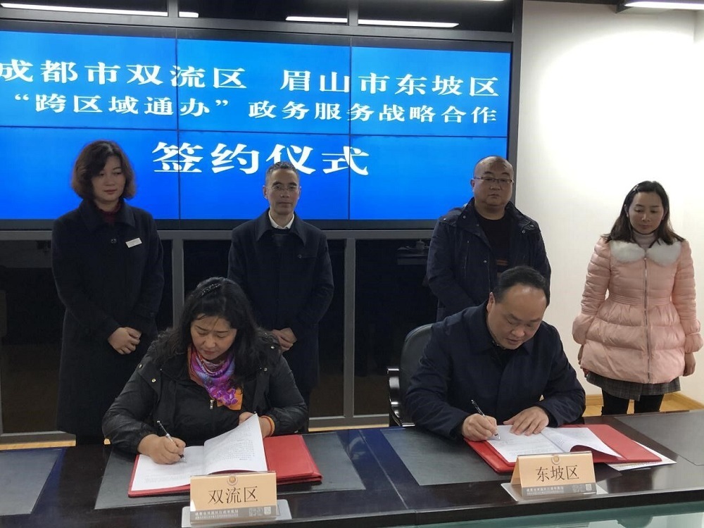 打破行政地域限制,共享政务资源……12月4日,记者从成都市双流区行政审批局获悉,当前,成都市双流区与已与眉山市东坡区签订跨区域《通办协议》—— 两地将依托四川一体化政务服务审批服务平台,打破行政地域限制,形成协同办理工作格局,最大限度方便企业和群众办事,共同融入成渝地区双城经济圈建设。