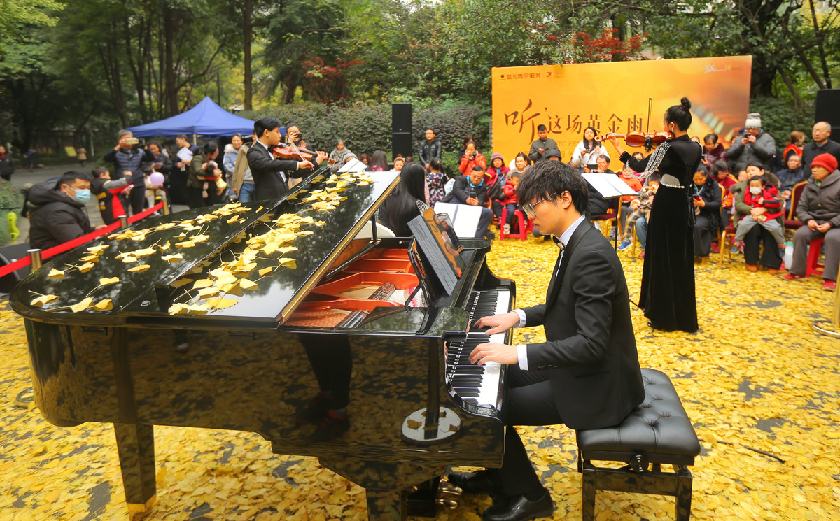 每年秋冬季,银杏就是成都的“漫天飞雪”。铺满“黄金雨”的大道上,浪漫的事有许多,可以是情侣漫步,孩童撒欢,也可以是小狗打喷嚏,彩色泡泡漫天飞舞……12月6日,蓝光嘉宝服务“杏好有你”银杏音乐会在蓝光诺丁山银杏大道举行。《一步之遥》《爱的礼赞》《莫扎特k525第一乐章》等节目组成了欢乐的旋律……
