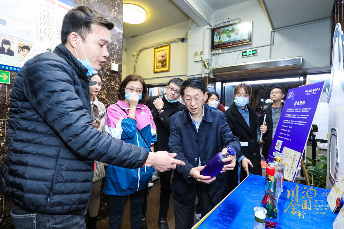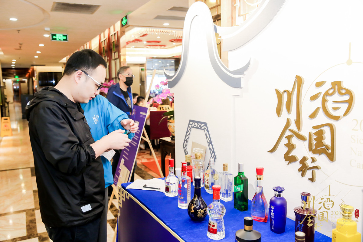 工作人员向当地市民介绍川酒