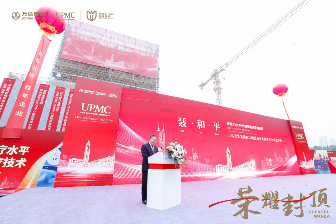 万达投资集团西区公司副总裁兼成都城市公司总经理聂和平致辞称:“成都万达UPMC国际医院的正式封顶,标志着成都医疗新时代的到来。”他透露:“医院将对成都医疗服务进行“革命性”升级与迭代。它是后疫情时代万达集团为社会谋求福祉的印证,更是为成都市、为天府新区所打造的医疗名片与国际地标!”