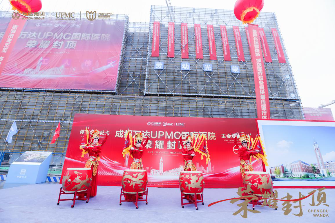 当日上午10时,封顶仪式以精彩的歌舞表演揭幕。天府新区管委会相关领导、万达投资集团西区公司总裁朋汪勤、万达投资集团西区公司副总裁兼成都城市公司总经理聂和平、UPMC中国区总裁彭士杰、万达文化集团成都医院项目部、中建二局、西南设计院等相关领导以及数十家主流媒体出席了此次封顶仪式,共同见证这一荣耀时刻。