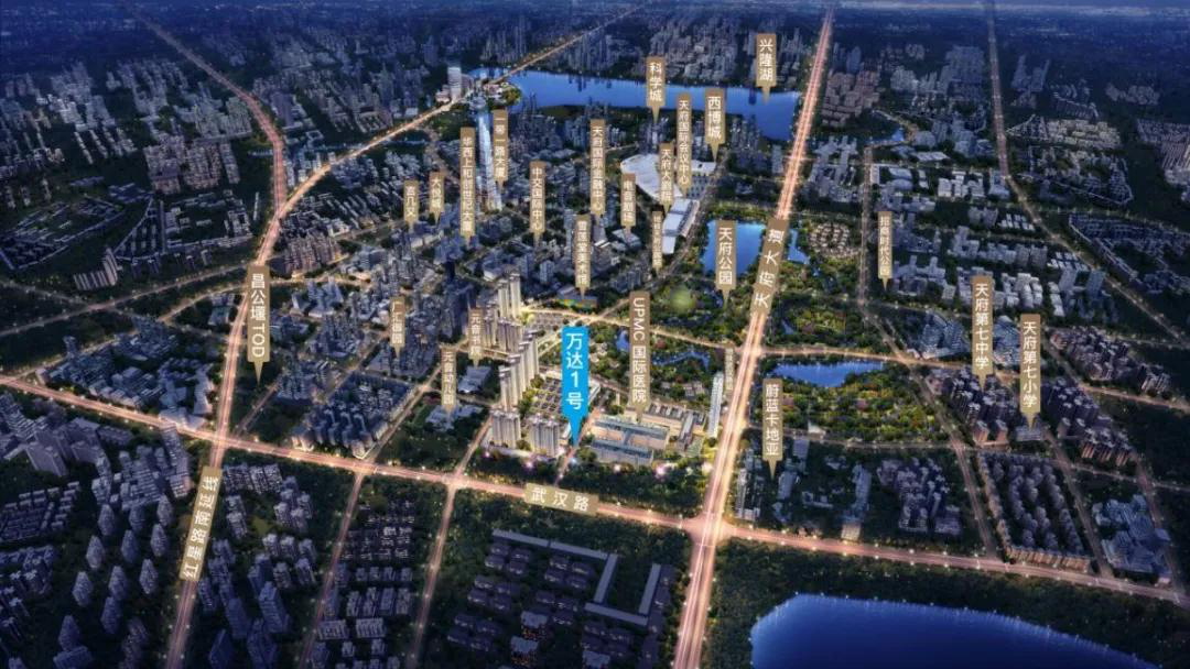 已开通的地铁1号线麓湖站就在万达1号旁边,整个区域将有8条地铁分布,一座城市候机厅也将浮出;与此同时,各种高规格城市级配套已在区域内集结——西部博览城早已落成使用,天府国际会议中心即将落成,中粮大悦城、雪莲堂美术馆、言几又文创中心、天府国际保税中心等配套也在紧锣密鼓的建设之中。