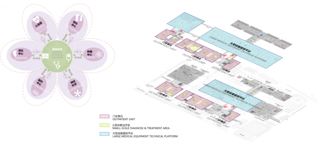 这是一座“花园式”的医院,它以医疗流程优化为前提,整体布局遵循绿色节能的原则,充分整合自然环境优势,匠心营造外部花园、内庭花园、下沉庭院、屋顶花园,形成多层次多维度的景观花园体系。在这样的就诊环境中,医护人员和就诊者都会感到更舒适、也更有利身心健康。