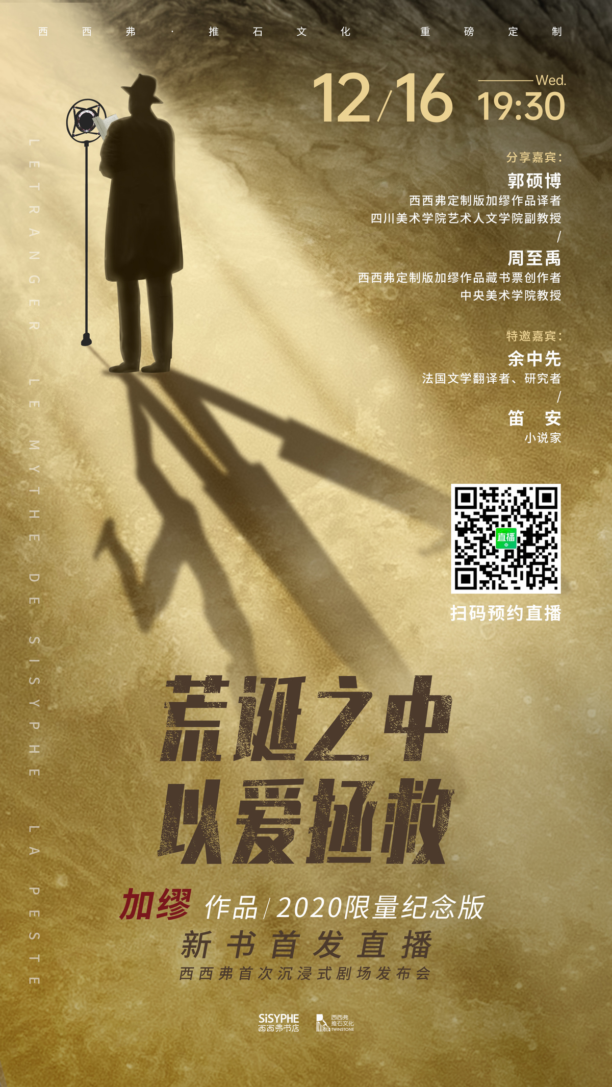 “重要的不是治愈,而是带着病痛活下去。”为了几年阿尔贝·加缪逝世60周年,西西弗推石文化重磅定制《加缪作品/2020限量纪念版》,首次沉浸式剧场新书发布。活动邀请了中央美术学院周至禹教授、四川美术学院艺术人文学院郭硕副教授以及法国文学研究者余中老师和小说作家笛安,一起“围炉”谈谈加缪的精神世界,更有专业话剧演员现场朗诵书中经典对话。