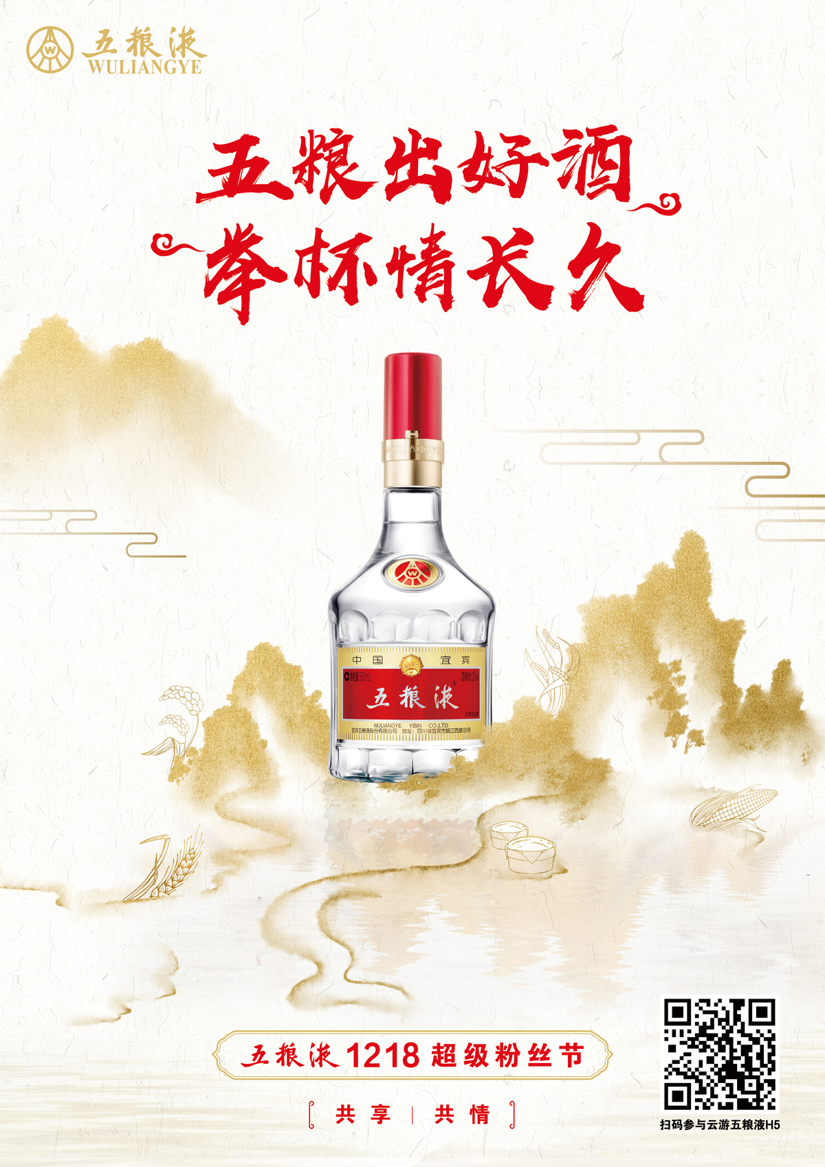 12月15日-20日,在2020中国国际名酒博览会期间,五粮液首次举办以“共享、共情——五粮出好酒,举杯情长久”为主题的五粮液1218超级粉丝节。通过视频邀约、H5云游互动体验、头部主播直播、微博赋诗大赛、官方线上店铺销售促动等丰富多彩的活动内容,打造“五粮液1218超级粉丝节”专属活动IP,增强品牌与消费者互动粘性,吸引更多粉丝参与。