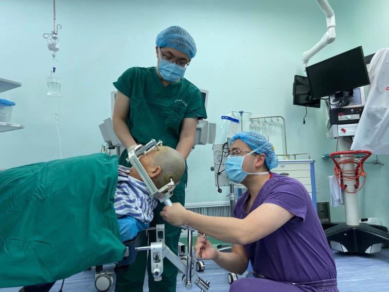 颅内深部病变活检需要非常高的定位技术,犹如定位巡航导弹可以准确击中目标,不然就要误伤其他正常脑组织;立体定向框架系统恰恰帮助患者解决了这一难题。这是成都五医院神经外科首例立体定向下颅内深部病变活检术,为确保手术成功,术前,在罗主任带领下,团队成员反复模拟,为顺利完成手术做好了充分准备。