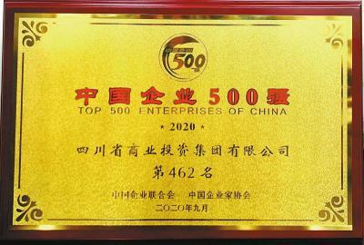 9月28日在郑州举行的2020中国500强企业高峰论坛上,四川商投作为四川首家新组建的国有资本投资公司、省属唯一的现代商贸流通服务产业投资平台,成功入选2020中国企业500强。