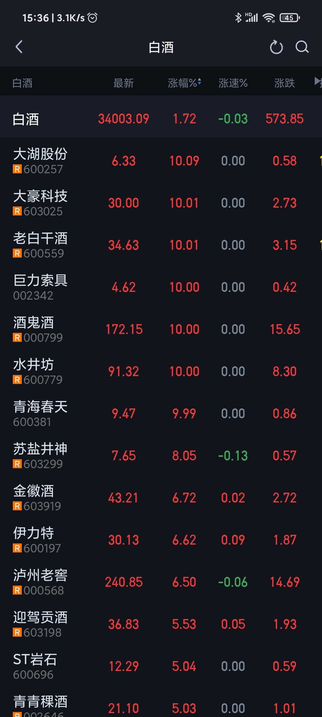 2021年新年开市的第一天,注定是历史的一刻。作为中国A股第一股,贵州茅台股价突破2000元大关,成为目前两市唯一的一只2000元票。在贵州茅台的带动下,白酒板块表现抢眼,板块整体上扬,上涨1.72%。其中五粮液盘中突破300元大关,再创新高。上周刚拿下ST舍得控股权的豫园股份两连板,水井坊、古越龙山、酒鬼酒、老白干酒也纷纷涨停。
