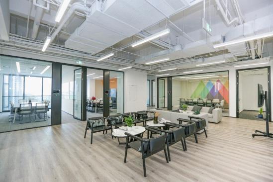 此次亮相的猛追湾·亚太并购大厦秉承绿色生态原则,通过更新再造焕发新生。在项目硬件改造上,保留了原本4.2米优越层高,半封闭可开窗的通风设计落地窗,营造无遮挡采光视野,并在部分楼层配置瑧稀露台,打造绿色健康商务办公场,尽享城心生态。宽敞明亮的极简现代风格大堂,专属电梯每梯仅覆盖服务约5000㎡,有效减少高峰期候梯时间。办公空间可灵活组合分割,满足1-1000人商务办公需求。同时,建面约2600㎡的6F智能共享办公区域,不仅提供拎包即入驻的精装共享办公产品,更有全维共享配套设施,包括多功能路演厅、会议室、户外花园、睡眠舱、茶水间等,为企业提供快速入驻及灵活办公等多样化的办公解决方案。