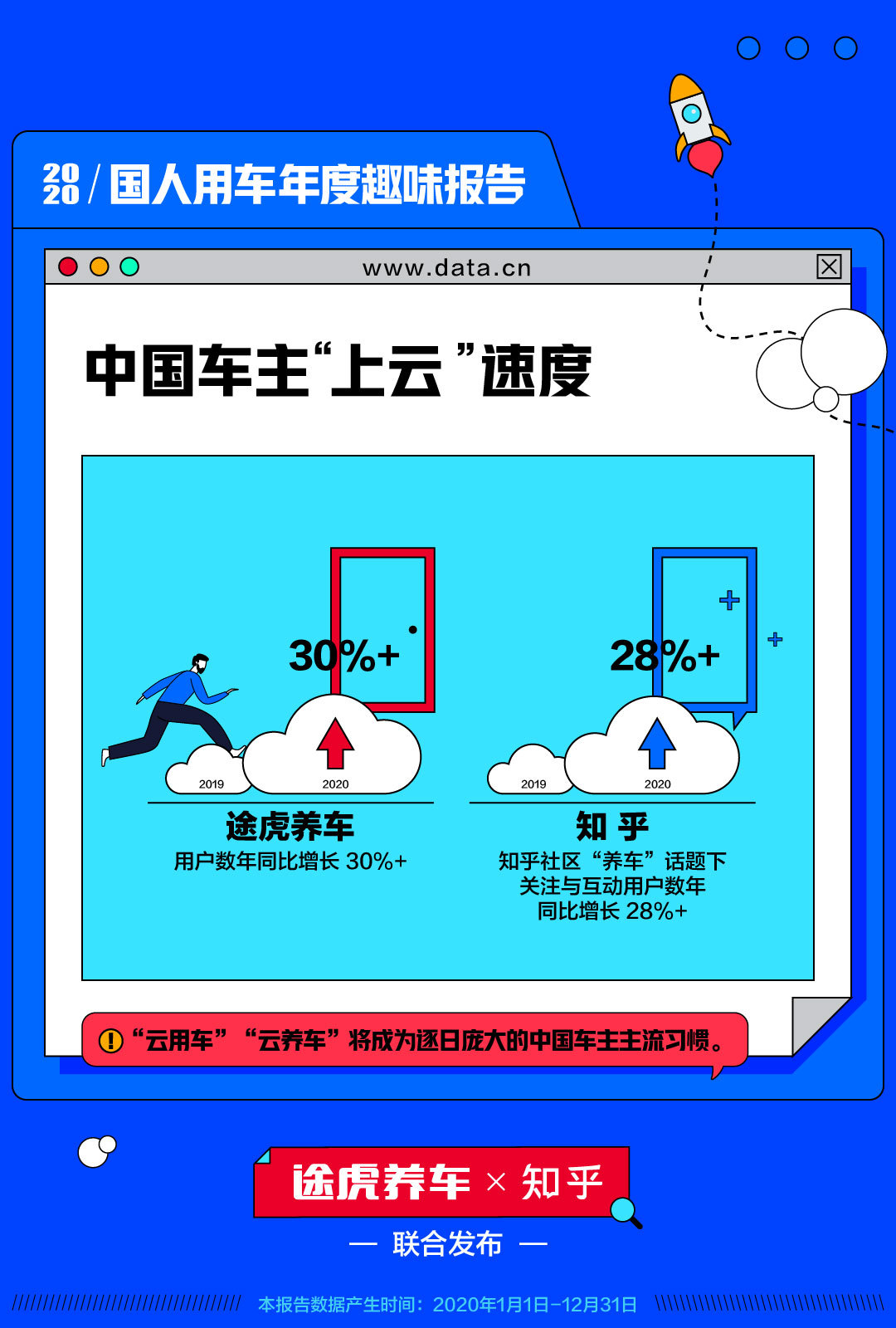 此外,伴随汽车后市场行业的逐渐成熟,中国车主的“上云”速度也在逐年加快。据披露,途虎平台用户数年同比增长超30%,与之相呼应,在知乎社区“养车”话题下,关注与互动用户数年同比亦增长超28%。总体来看,今年因新冠肺炎疫情影响,用户对于汽车养护的知识和“云上养车”更加渴望,“云用车”,“云养车”将成为逐日庞大的中国车主的习惯。