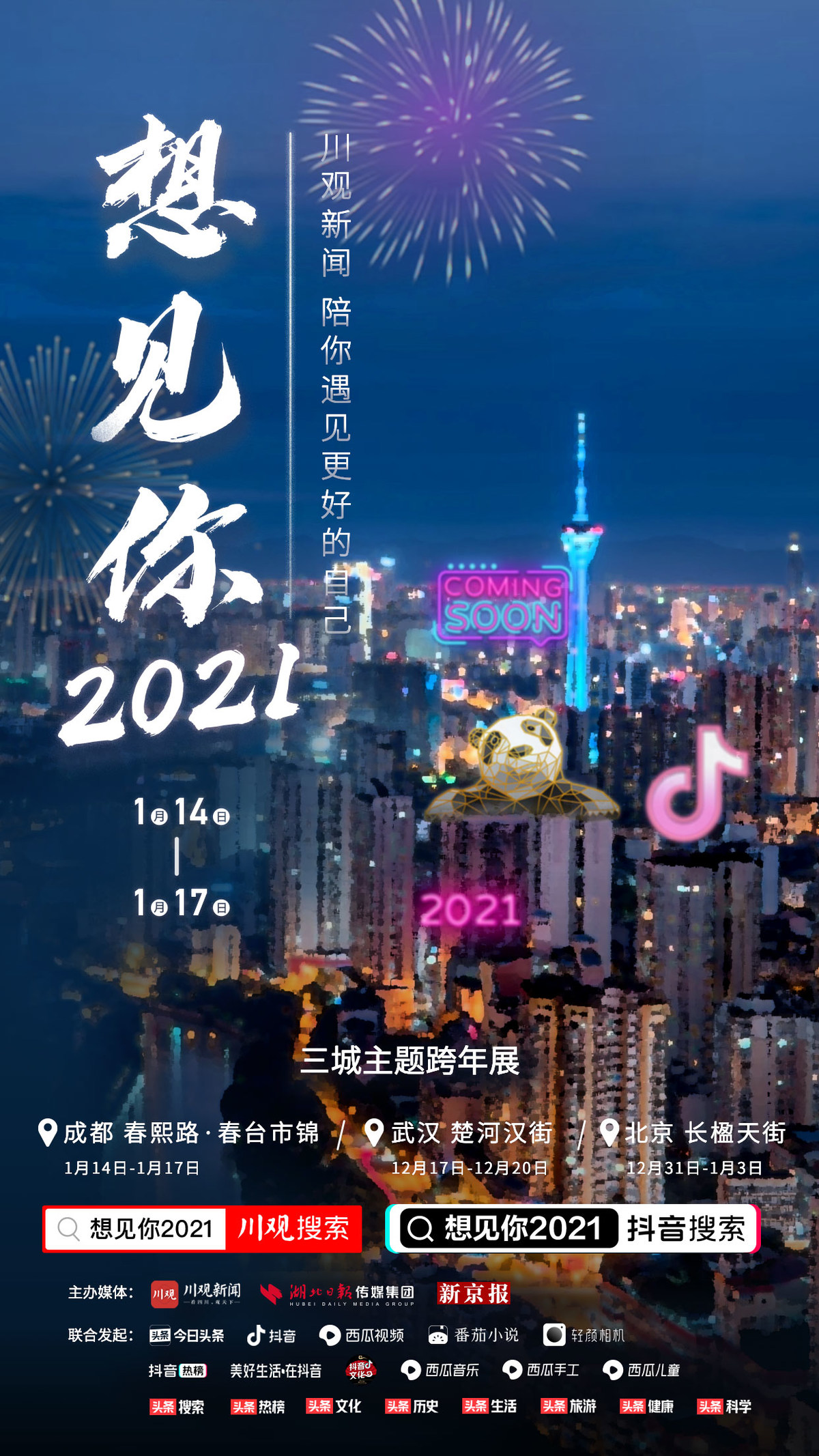 许愿2021 ,迎接农历新年。今日,由四川在线客户端、抖音、今日头条、西瓜视频等联合主办的“想见你2021”主题线下快闪活动,重磅登陆成都春熙路网红市集春台市锦。