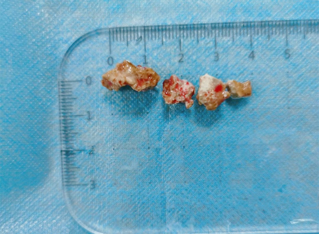 无独有偶,和廖女士有着同样经历的胡女士紧跟着入院,同样被确定为支气管结石。在完善术前准备后,通过气管镜完成了对两位患者的取石治疗。术后,气促、咯血、咳嗽等症状得以迅速缓解。
