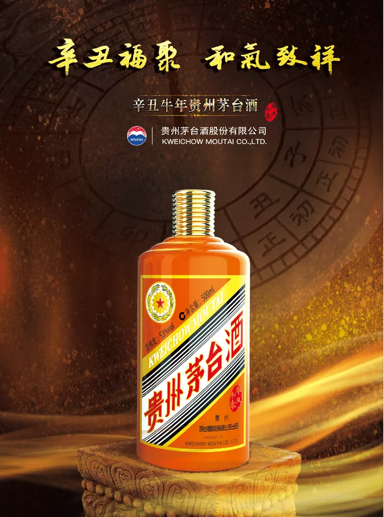 据了解,辛丑牛年贵州茅台酒采用著名画家尼玛泽仁先生创作的《高原之舟牦牛》牛年生肖国画,还邀请著名书法家创作书法作品《辛丑牛年生肖酒铭》,再次将茅台文化与书画艺术巧妙融合。辛丑牛年贵州茅台酒瓶身为赤铁棕,主题词为“辛丑福聚 和气致祥”。