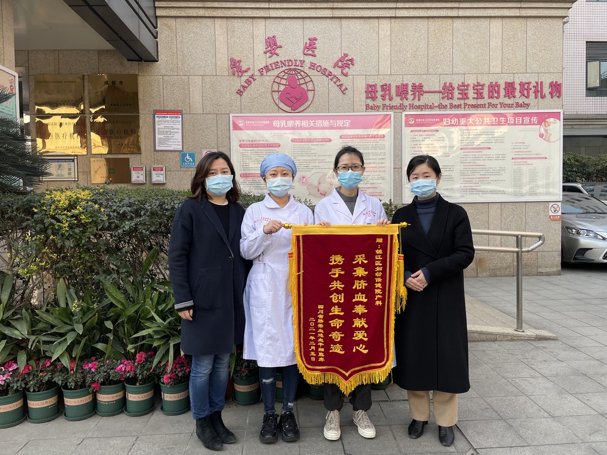 2月5日上午,四川脐血库工作人员将一面写有“采集脐血奉献爱心,携手共创生命奇迹”的锦旗送到成都市锦江区妇幼保健院副院长颜焰的手中,感谢该院在一场生命接力中交过的“第一棒”。