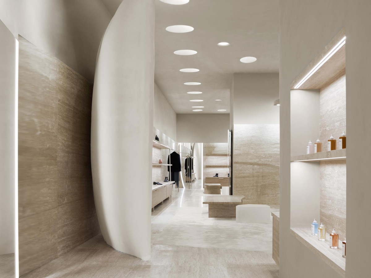 店内,墙体和立柱——两种建筑上的基本结构——看起来像是彼此分离的个体,高级定制家具也在以往熟悉的造型之中加入了变化,它们偏离规整的形状,随着空间的划分倾斜和弯曲,呼应了Maison Margiela设计语言中“dressing in haste匆忙穿搭”的理念。这将为西南奢侈品市场消费者带来全新消费体验和感官。