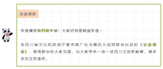 你也可以通过文旅厅官方平台:微信公众号(含视频号)、微博、抖音、微视、快手、四川发布、封面新闻、腾讯新闻、天天快报、今日头条、智游天府平台、四川省文化和旅游资讯网站等收看安逸的节目哦~