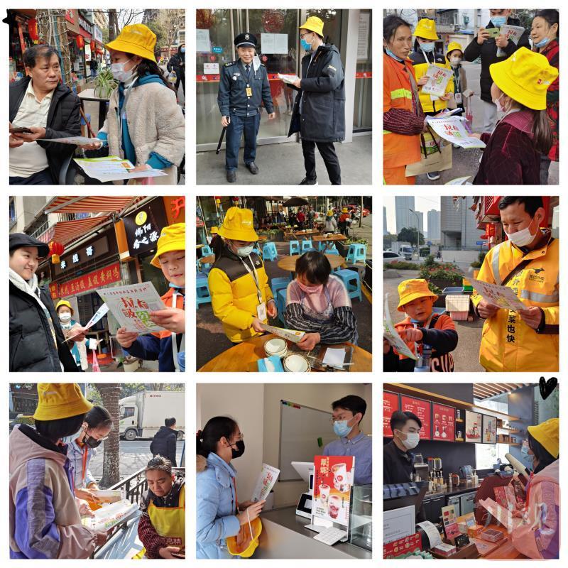 较场坝街位于市中心,街道狭窄,沿街商铺中,餐饮类占大多数,小志愿者们瞄准这些摊位,奶茶铺、串串店、外卖骑手、中餐馆成为他们科普宣传的“主阵地”。