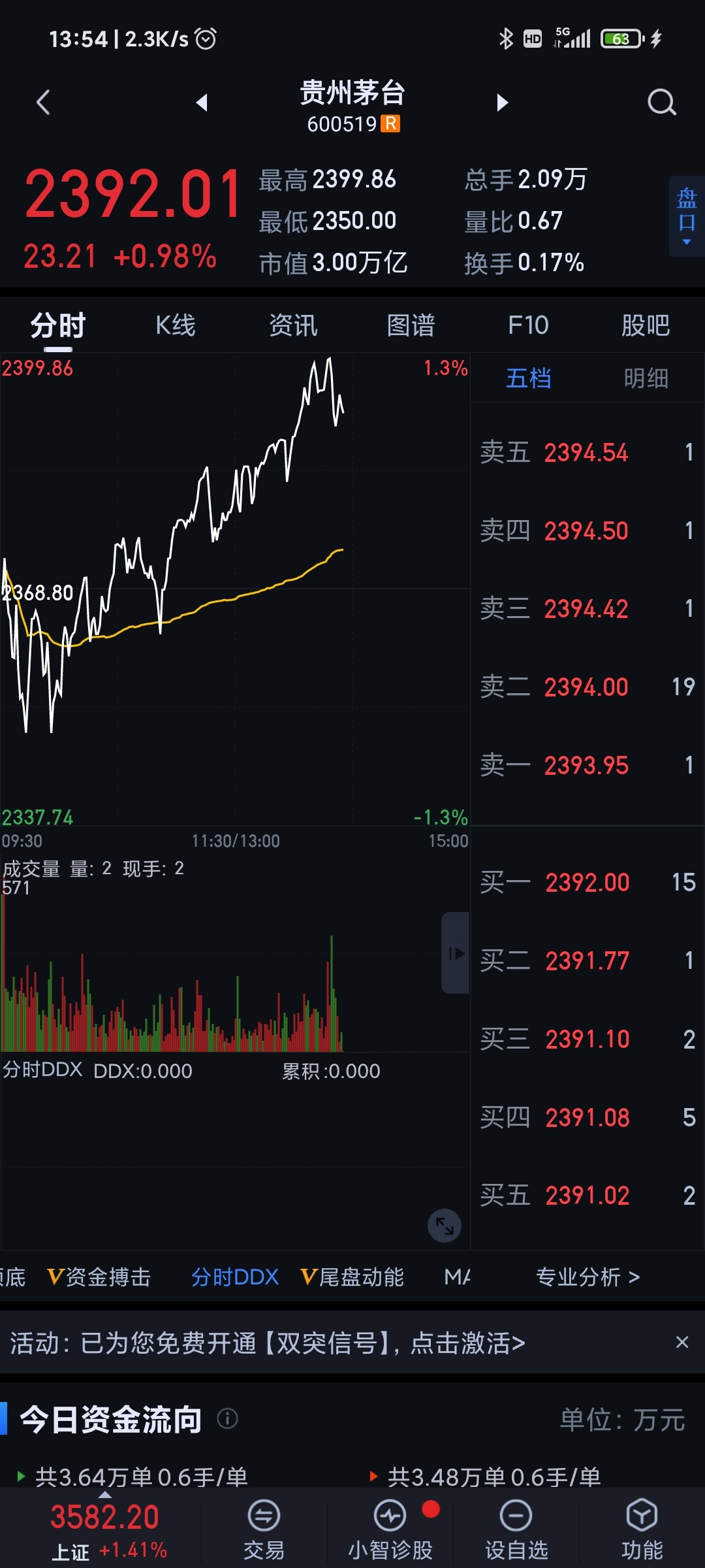 再过两天就是春节假期,受春节大假利好刺激,白酒股涨势如潮。作为行业风向标之一的贵州茅台,今日(2月9日)又创新高,盘中达2399.86元每股,总市值更是突破3万亿元大关。
