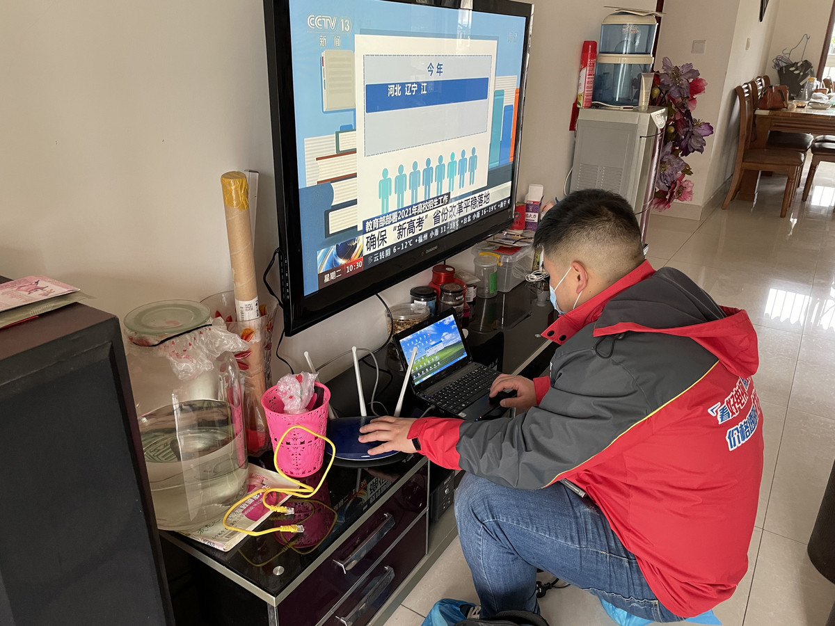 随后,陆涛快速地收拾工具设备,赶往下一家用户。“春节来临,阖家团聚,却也是广电管家最为忙碌的时候。”陆涛说,“春节期间人们大多会围坐在电视机前收看春晚或者综艺节目,尤其是今年提倡就地过年,有些在外地工作的人们回不来,就更需要通过网络或者电视与家人视频拜年,我一天要跑10多个小区入户拜访,为报修和有安装需求的用户处理相关问题,同时也帮用户进行常规检查,以保障春节期间用户安心看电视用网络。”他说,春节期间他一直坚守在岗位上。当天,在短短几个小时内,陆涛就上门处理了6家用户的报修和检测。处理每一户的问题,他总是很快就能找到症结所在,一般10多分钟就能处理好问题。