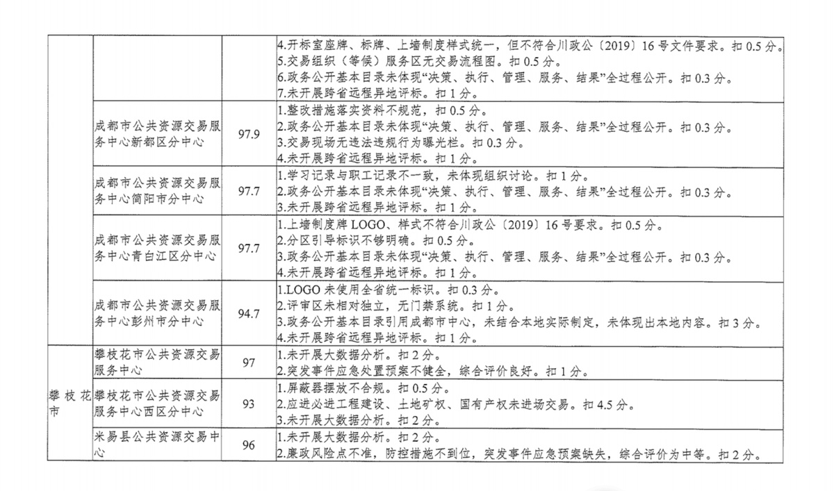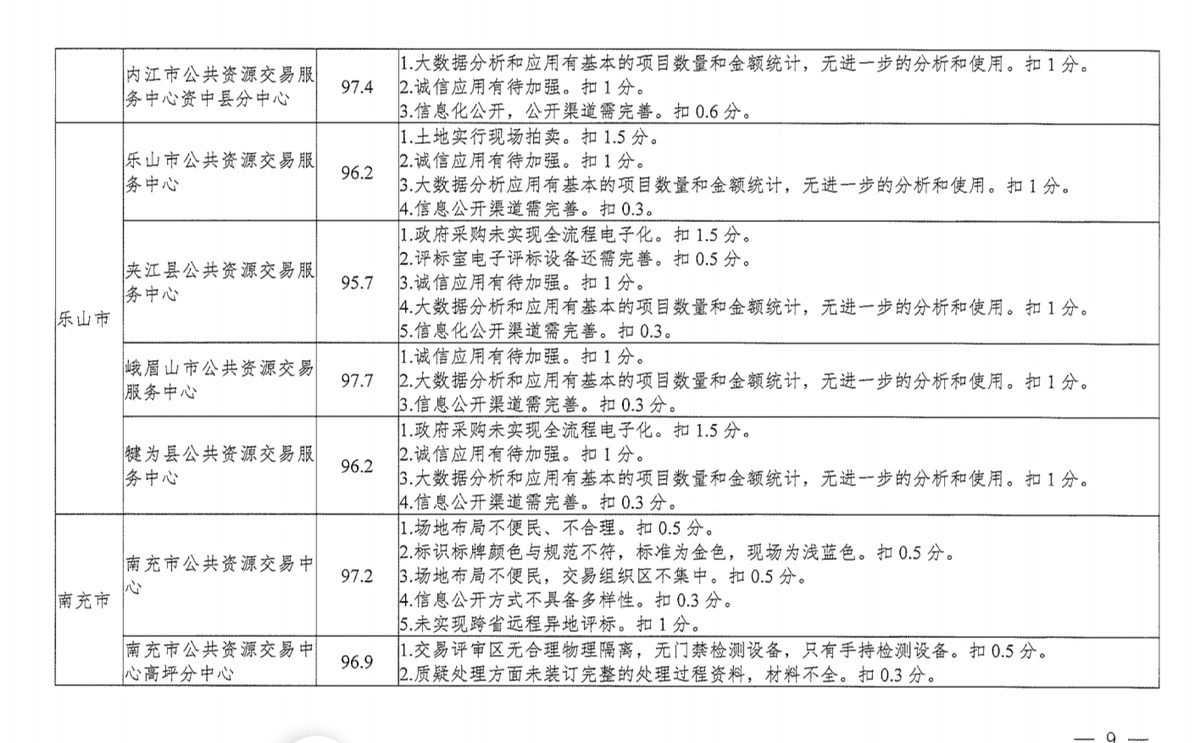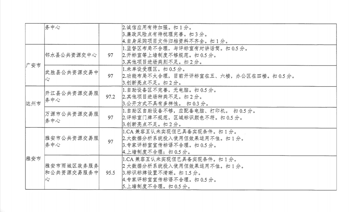 据了解,为推动我省公共资源交易服务标准化规范化建设,从2019年起,四川省率先开展公共资源交易服务标准化规范化建设“示范交易中心”创建活动,将“两化”试点范围从政务公开延伸到公共资源交易平台的硬件设施、制度建设、运行管理、服务效能、风险防控等方面,全面实施基层公共资源交易平台能力建设。