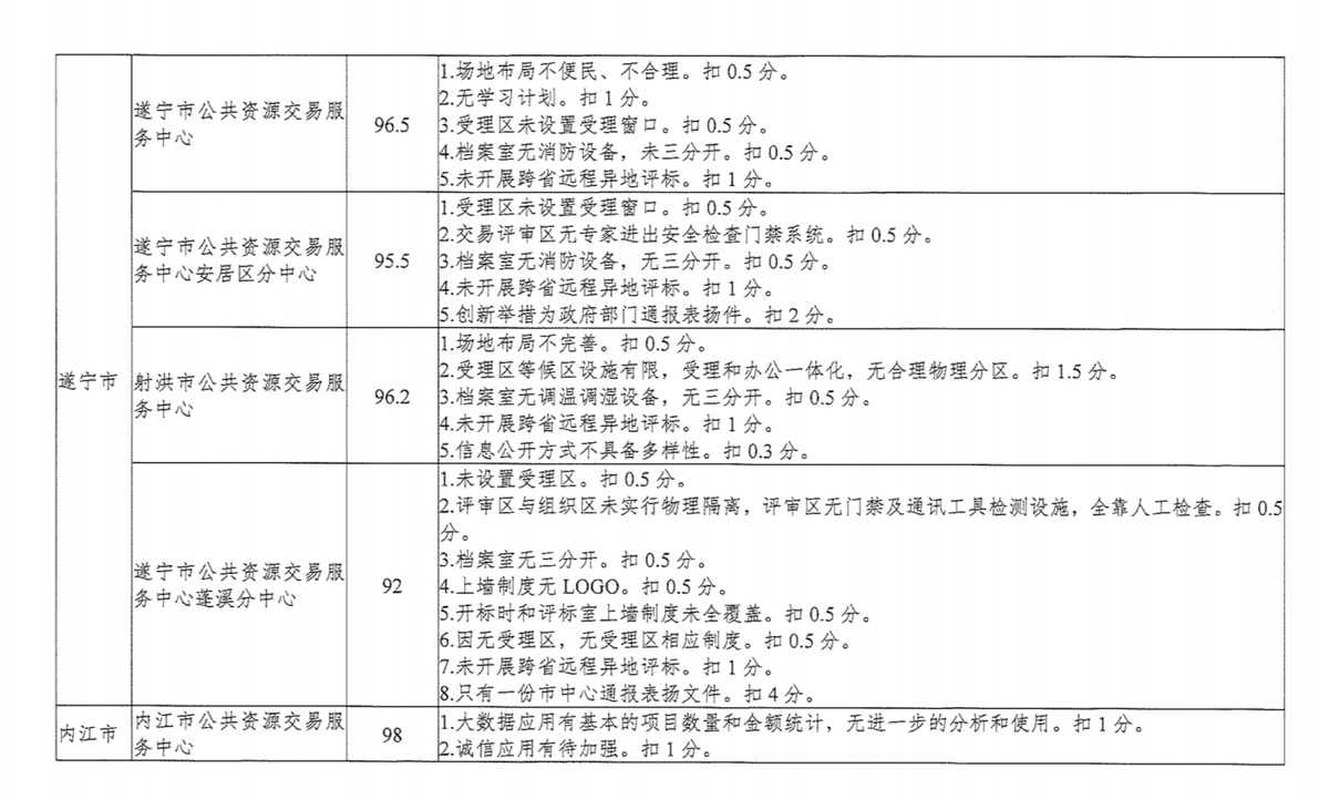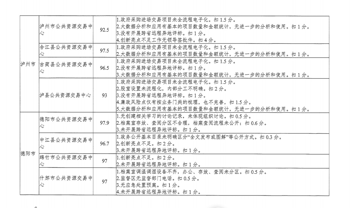 全省首批“示范交易中心”创建活动开展以来,各地交易中心积极参与申报,去年下半年我省政府政务服务与公共资源交易服务中心,组织5个工作组,通过采取实地查看、查阅资料、演示系统、综合评审等方式,对首批申报的单位进行了评估验收,总评成绩均在90分以上,德阳市公共资源交易服务中心等62个达到了公共资源交易服务标准化规范化建设“示范交易中心”建设标准。