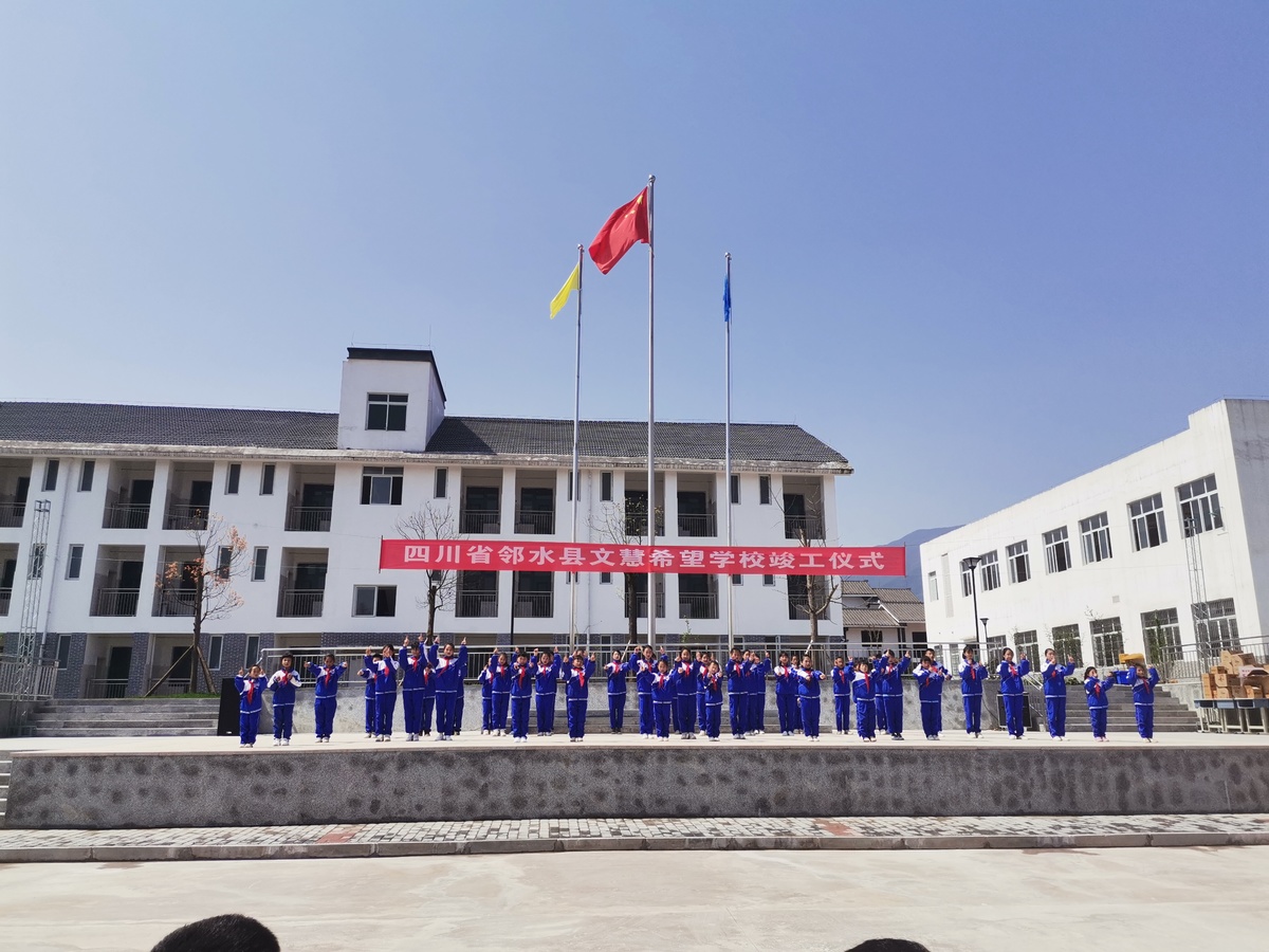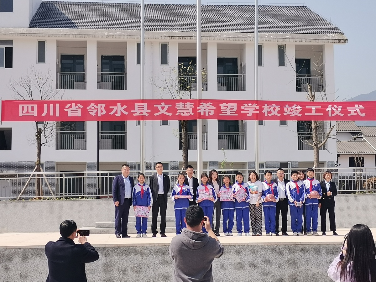 3月24日,广安市邻水县文慧希望小学举行落成典礼,该校也是中国平安在川捐助的又一所希望小学。当天,中国平安还为该校学子捐赠了价值5000元的篮球、文具等教学用品。