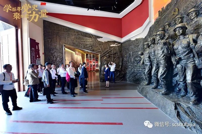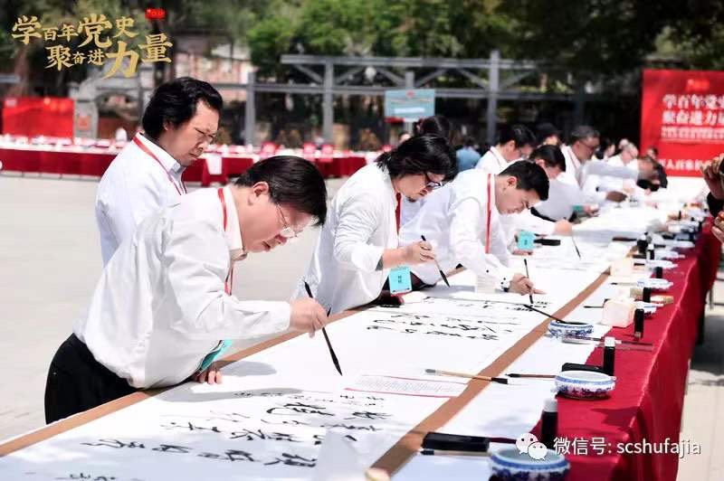 在活动现场,百人百米长卷和100书法献礼创作将气氛推向高潮。百名书法家胸有成竹,饱含深情,笔走龙蛇,篆隶楷行草五体兼备,异彩纷呈。全体书法家还参观了四川石油会战纪念馆。