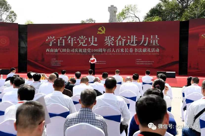 3月27日,“学百年党史 聚奋进力量:西南油气田公司庆祝建党100周年百人百米长卷书法献礼活动”在隆昌气矿纪念馆会战广场举办。中国石油西南油气田公司西南油气田公司党委常务副书记、工会主席赵厚川,中国书法家协会副主席、四川省文联副主席、四川省书法家协会主席代跃,四川省社科联理事、四川省经济文化协会会长魏蓉生,四川省书法家协会、四川省经济文化协会、中国石油书法家协会、长庆油田书法家协会等共计一百名书法家,西南油气田公司相关部门、单位负责人参加活动并出席启动仪式。