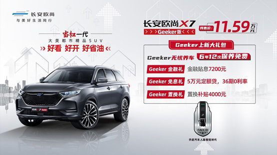 同时,长安欧尚推出“Geeker上新大礼包”,包含:6年12次保养免费的Geeker无忧养车;金融贴息7200元的Geeker金融礼;5万元定额贷、36期0利率的Geeker免息礼;以及置换补贴4000元的Geeker置换礼。