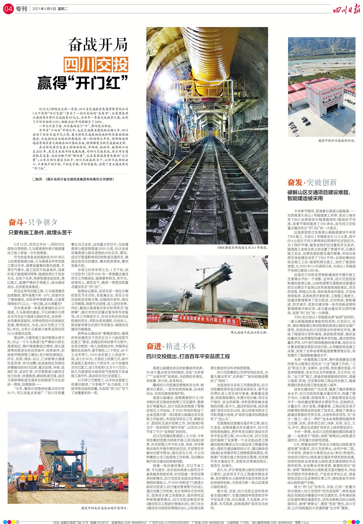飘红的数据如何取得?四川交投如何下好先手棋、开好首盘局,如何落地实施综合交通万亿工程,如何担当交通强省建设“主力军”重担?4月6日的《四川日报》以《奋战开局 四川交投赢得“开门红”》为题,进行了关注。