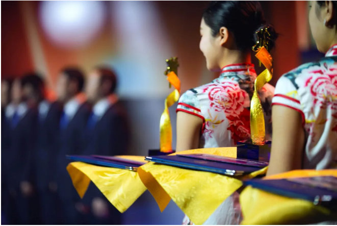 奖励范围从公司员工扩展至社会各界人士,包含高粱种植基地示范村、科研机构、合作伙伴、会员、郎酒粉丝等。颁奖典礼现场,来自泸州、自贡、宜宾的40个“本地糯高粱种植优秀示范村”代表登台领奖,研发出专属品种郎“糯红19号”的四川省农科院科研团队也登台亮相。