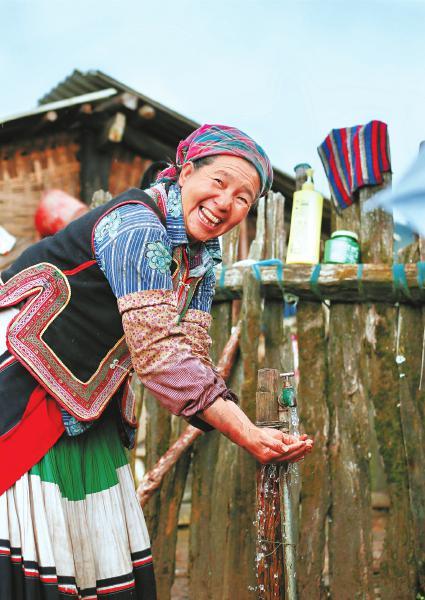 攀枝花市盐边县格萨拉乡彝族大妈用上自来水,喜笑颜开