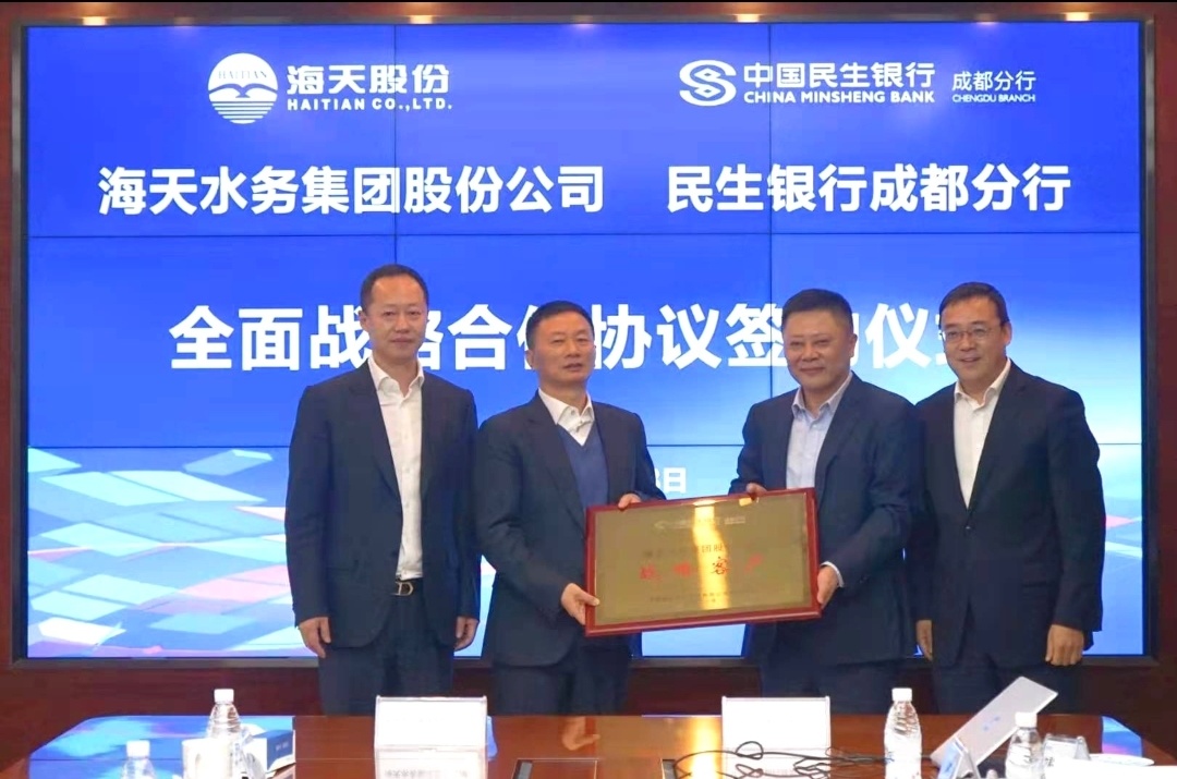 4月13日,中国民生银行成都分行与海天水务集团股份公司(以下简称“海天股份”)签署全面战略合作协议,双方将着力“3060碳中和目标”重点领域,加快在生态与环境领域的碳中和科技创新突破,在多层次、多领域开展全面合作。