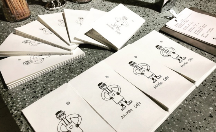 “AkimboCafe”是创立于2016年的一家创意精品咖啡馆,秉承“唯咖啡和信仰不可辜负”的理念,标致时尚的空间设计弥漫浓郁生活美学,同时结合展览场域、品牌包装、精品咖啡等元素,展现极度清新的魅力。那位挂著眼镜、双手叉腰的咖啡师正自信地冲著咖啡,等您到来。