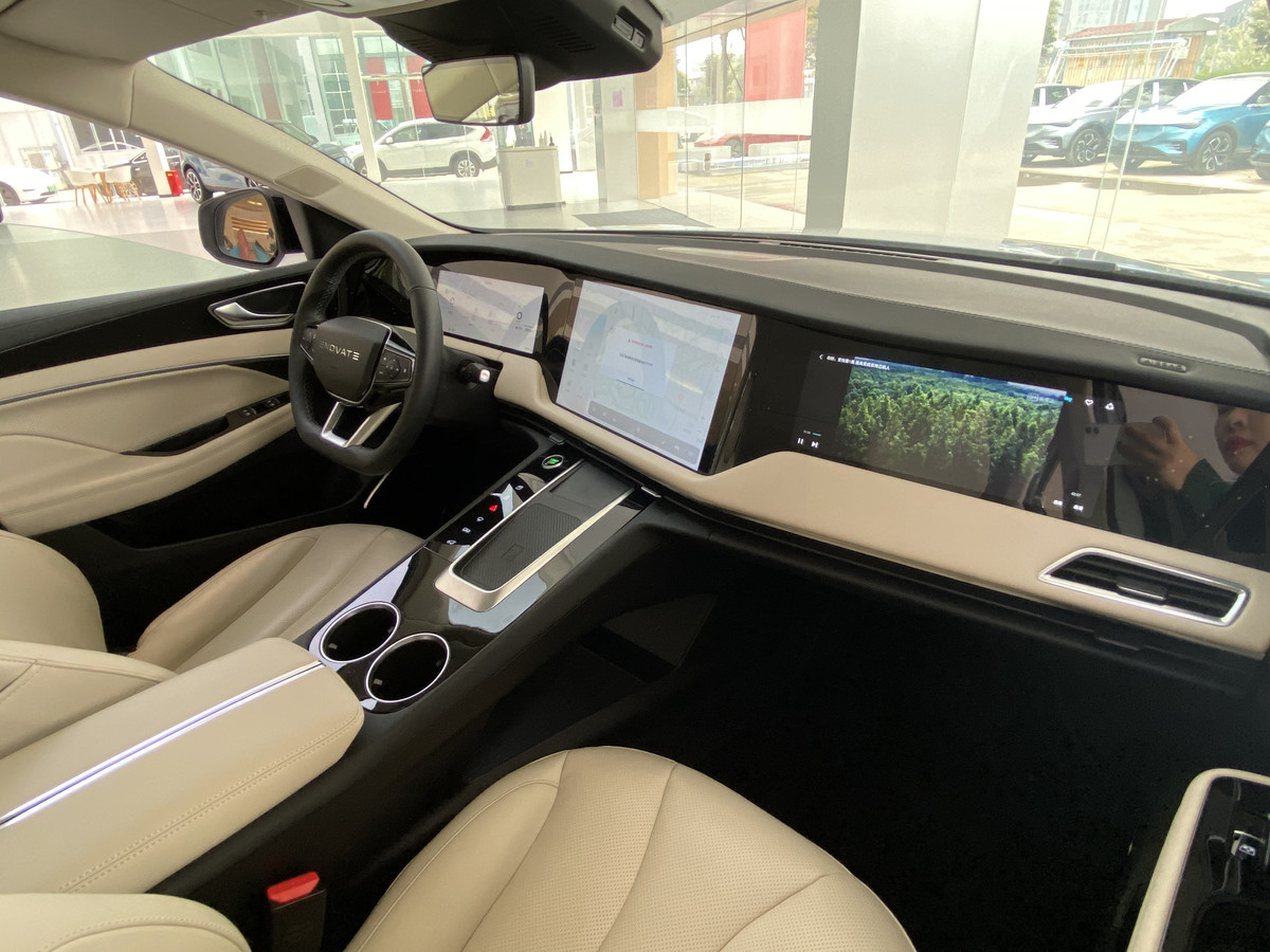 车里全是屏幕!这是天际汽车留给记者最深的印象。仪表、中控屏、副驾屏幕及后排双屏形成了武五屏联动,名副其实的“屏霸”。