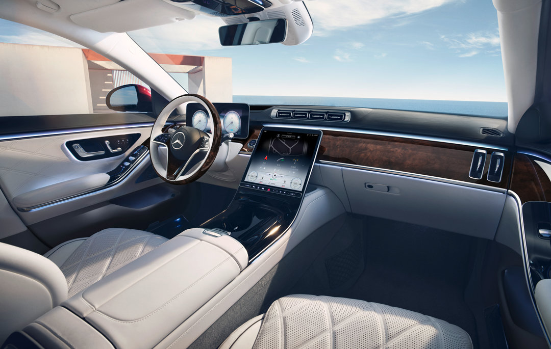 5,470毫米的车长与3,396毫米的超长轴距,令宽适空间尽显开阔格局。全新迈巴赫S级轿车从视、触、嗅、听全感官角度打造了专属的奢华体验。Nappa真皮与高品质木饰遍布车内,搭配以精湛钻石绗缝设计、更大菱形格纹与双缝线打造的豪华座椅,以及全新升级的带12种色彩组合的64色环境氛围灯,带来心旷神怡的瞩目之礼;头等舱级后排独立座椅配合带电动伸缩腿托按摩和头枕加热等丰富功能的后排座椅舒适组件,提供尊贵之享、触感之礼;No.12桂香香氛致敬迈巴赫V12的顶级专属,成就“嗅觉之礼”。