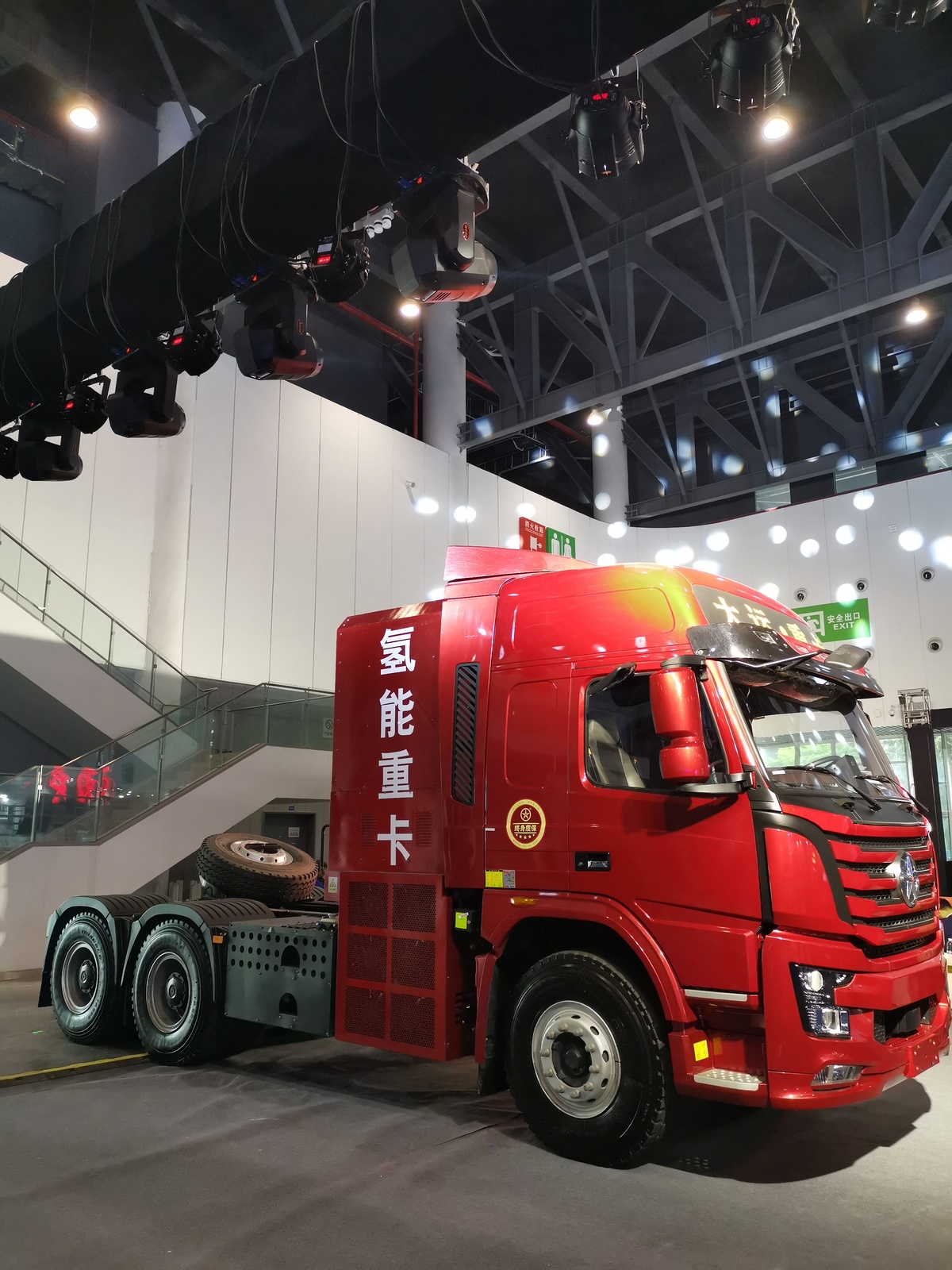 示范线采用由亿华通与大运汽车联合开发的49吨氢燃料电池重型牵引车运营,该车具有完全自主知识产权,燃料电池功率可达200千瓦,续航可达450公里,具备环保无污染、续航里程长、负荷载重大、加氢时间短等特点,处于国内行业领先水平。