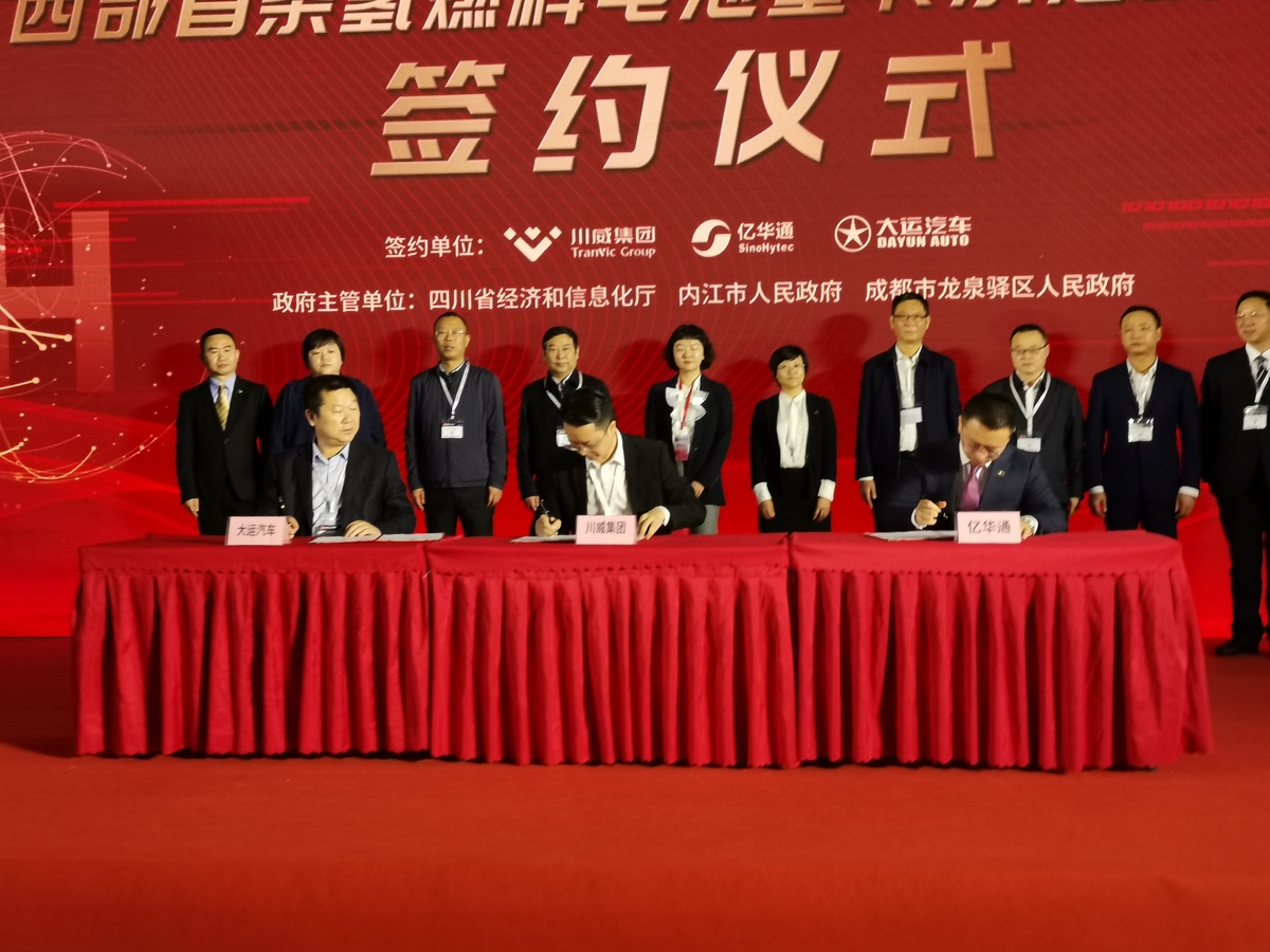 4月22日,由川威集团、亿华通、大运汽车联合开展的西部首条氢燃料电池重卡示范线在成都签约。