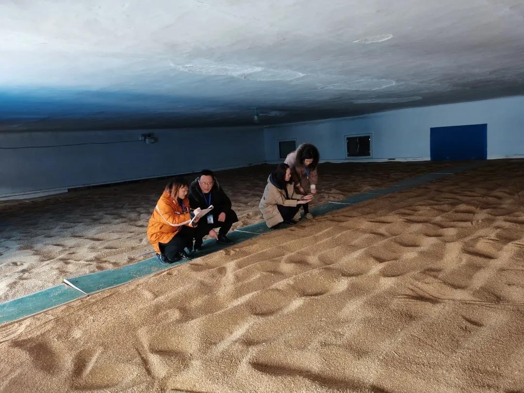 达州市审计局在对国有粮食企业审计中,重点关注粮食出入库质量检测、储存品质测定、储备粮收储及信息化安全存储管理等情况。图为审计组在粮仓现场核查粮食存储情况。