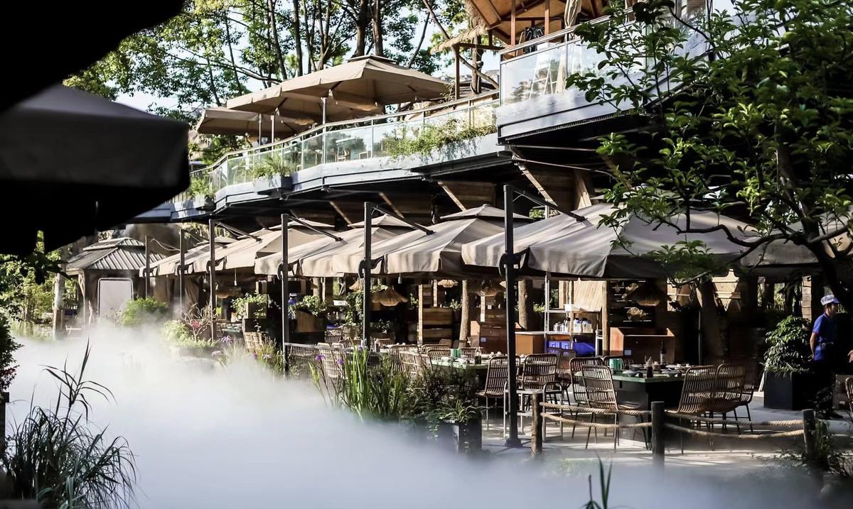 华灯初上,坐在茅歌水韵火锅店湖畔小屋里的食客们,一边观看着水雾舞台上的表演,一边赏着夜景烫着火锅。据相关负责人介绍,茅歌水韵湖畔生态火锅店总规划200亩,目前开放了150桌,能容纳1000多人同时就餐。五一小长假茅歌水韵专门打造了赏花区和汉服拍照打卡区。此外,还准备了优惠券、霸王餐等福利送给前来就餐的食客。