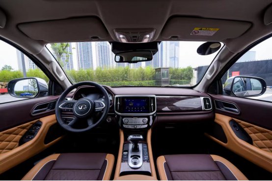 在内饰上,车内无所不在的软质包覆,前后排座椅加热,加上多连杆后悬架、后排肘枕、杯架、双温区自动空调、电动天窗、100余处降噪处理和专属香氛,完全是轿车的体验感。