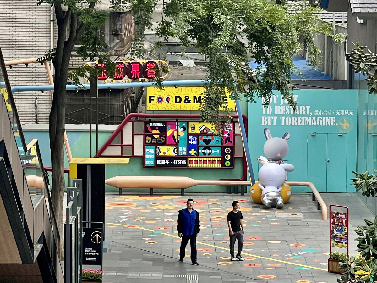与成都远洋太古里一墙之隔,曾经呈现老旧状态的玉成街,经过政府主导,拆除围墙,协调院落,企业精心设计,目前大改模样——一排外观形态各异的迷你小店一字排开,各色四川美食的香气在街区萦绕,不少成都首店和网红店亮相街区,四处可见的街区IP“玉小兔”元素美陈让街区充满朋克气息……四川在线记者在现场看到,玉成街以年轻化姿态开街迎接来往的市民和游客。