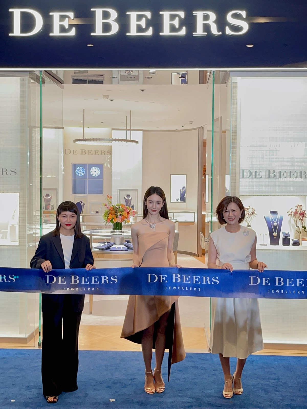 戴比尔斯珠宝品牌挚友金晨,携手戴比尔斯珠宝中国区总经理周育如和成都IFS国际金融中心总经理邓敏姮,共同为新店剪彩