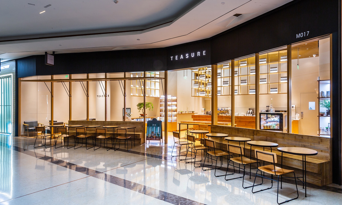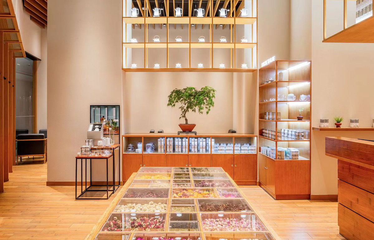 从室内环境到茶具均由日本设计师、无印良品艺术总监原研哉设计,“MUJI风”与中国传统茶文化的结合受到不少年轻消费者的亲睐。在现场可以看到,煮叶太古里店门面采用仿宋“支摘窗”的创新设计,是整体形象中的最大亮点,在空间上实现了连接古今的时间纽带。为快节奏的现代人提供一个慢生活场景,营造一种屋檐下人与人之间谈笑风生的交互场景。室内货架、桌椅和地板延续了浅色的竹元素。