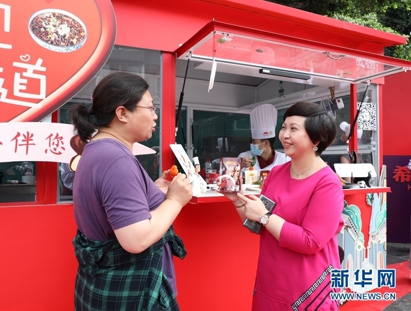 幸福的味道离不开李锦记,李锦记中国企业事务总监赖洁珊向游客推荐李锦记新品。