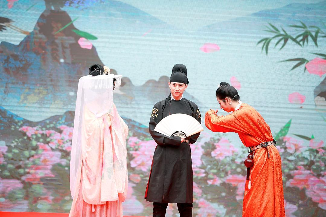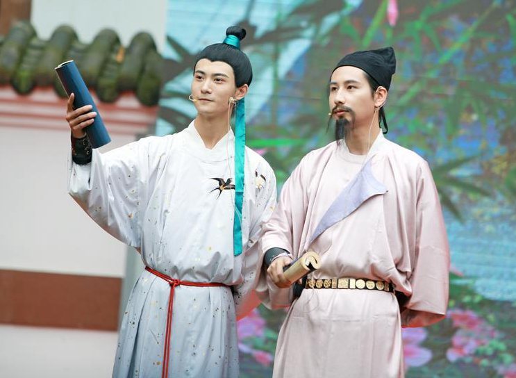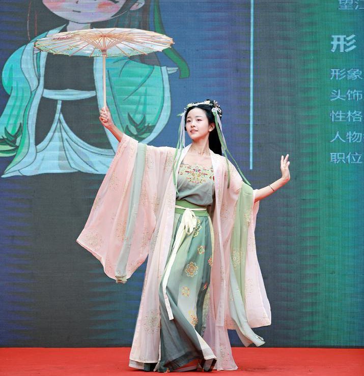 随后的薛涛汉服情景秀中,以薛涛为主角,白居易、元稹、李白、杜牧为配角,为观众送上了一出充满年轻活力、又有文化内涵的汉服情景剧。