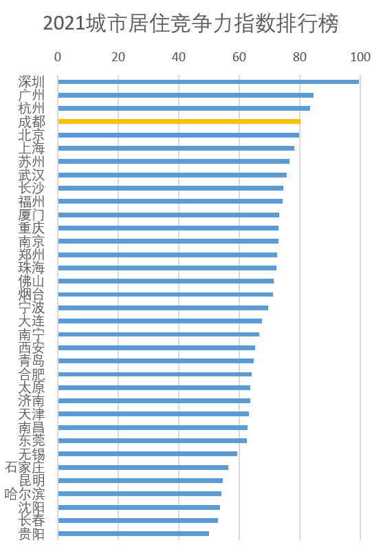 成都居住竞争力超越北京、上海,排名全国第4